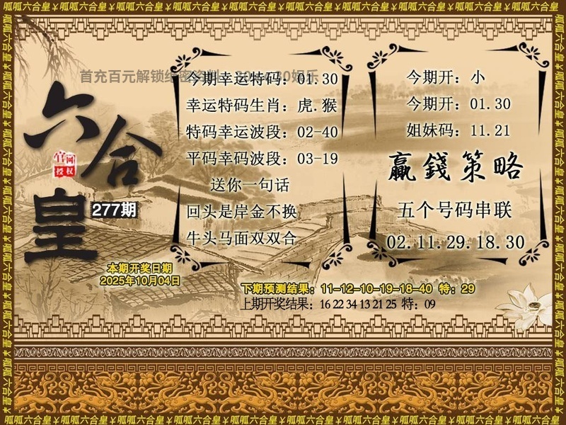 277期必中头数🍀『单头』🍀开虎16准